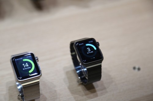 发布会现场并未公布两款产品的屏幕尺寸何分辨率,根据网络上流传的应用开发资料看(非苹果官方数据),38及42毫米Apple Watch的屏幕分辨率不同,其中38毫米款式屏幕分辨率是340×272像素,而42毫米款则是390×312像素;屏幕尺寸是1.33及1.53英寸。
