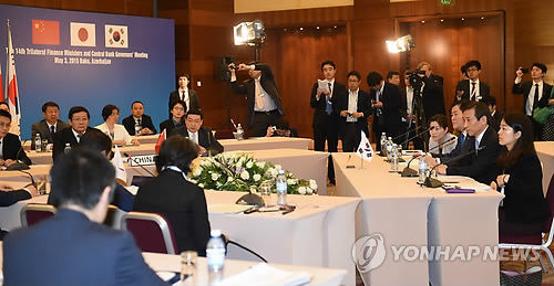 5月3日,第14次韩中日财长和央行行长会议3日在阿塞拜疆首都巴库举行,三国财长和央行代表在会上讨论了近期世界经济动向及加强区域金融合作的方案。韩方由经济副总理兼企划财政部长官崔炅焕和韩国银行行长李柱烈出席会议。