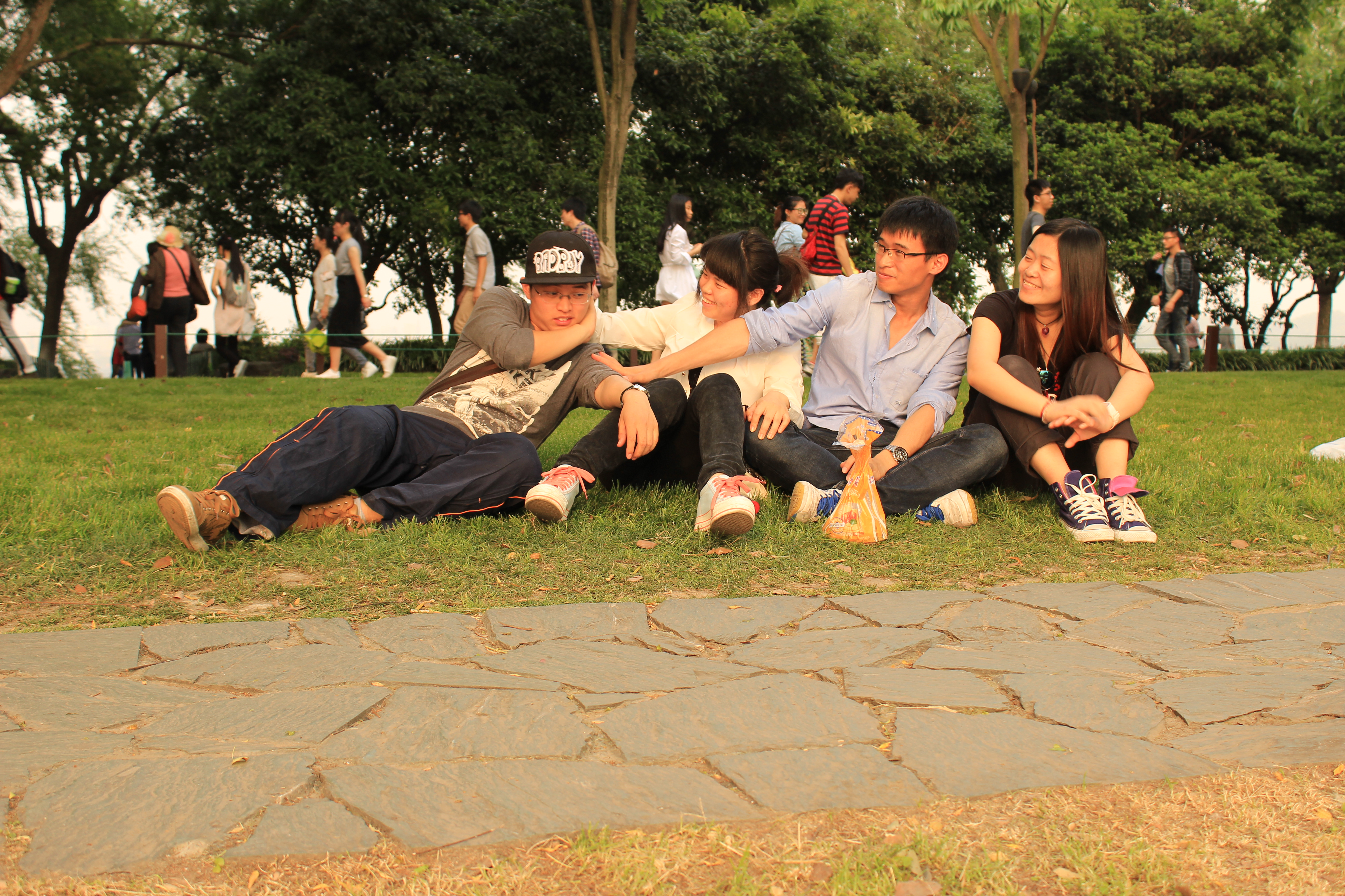那天我们在图书馆前拍照。突然想起,这里正好是大一军训拍照的地方。手臂挥舞,一顶顶军帽被抛向天空。