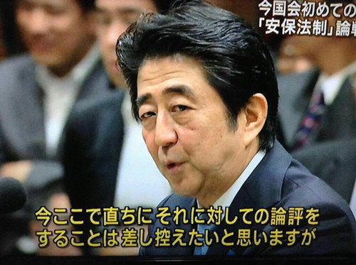 在当天党首辩论中,日本共产党委员长志位和夫说,日本在接受《波茨坦公告》后结束了战争,《波茨坦公告》第六条以及第八条中提到的《开罗宣言》确认日本发动的战争是侵略战争。志位和夫为此要求安倍就日本发动的那场战争是对是错做出明确表态。