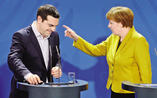 希腊总理齐普拉斯(左)和德国总理默克尔(右)