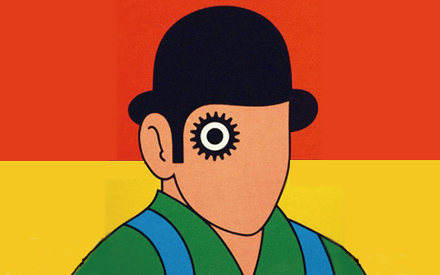 六七十年代是库布里克的创作高峰期,牛逼闪闪的“未来三部曲”(《奇爱博士》(1964)《2001:太空漫游》(1968)《发条橙》(1971))中探索的都是核战、末日、人类历史进程、人性与制度等等严肃而宏大的命题。而这一时期库布里克的采访差不多都是这酱紫滴:“我不相信任何地球上的一神论宗教,但我的确相信人能够创造一个迷人而科学的上帝定义。每个人都有自己的世界。”或者当他想到美苏军备竞赛,人类与核武生存在同一个世界,却只觉得原子弹是由“几个蘑菇云镜头组成的新闻短片来代表的抽象概念”,世界末日只是杞人忧天……这样的麻木让库布里克坐立难安,于是《奇爱博士》他就在谈笑中用一颗无法阻止的原子弹毁灭了世界。