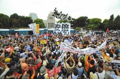 这是近来日本举行的规模最大、人数最多的一次反安保法案抗议集会。