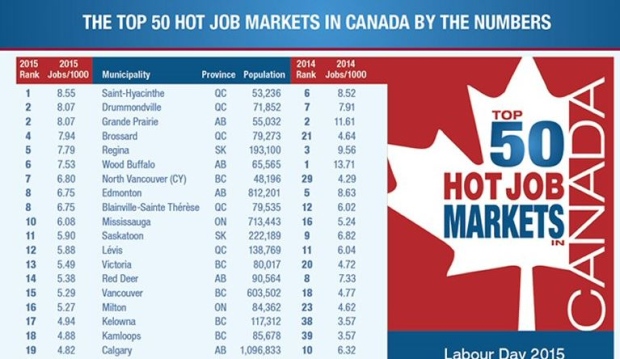 在去年,油砂矿之都迈克穆雷堡(Fort McMurry)去年是全国最容易找工作的地方,今年则变成了魁省的Saint-Hyacinthe。该市就业兴旺得益于其经济多样化,当地有奶制品工业、全省最大的农业展销会、专科学校、森林生物技术公司以及生物甲烷公司。
