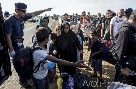 这些让人难以置信的场面,使得奥地利和德国宣布,他们愿意让难民进入自己国内,前提是在匈牙利决定提供巴士以运送这些精疲力尽的难民之后。下图为难民越过边境后被匈警方派巴士接至移民接待中心。