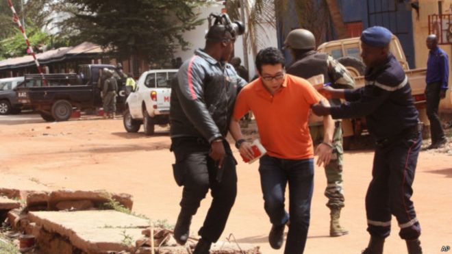 丽笙酒店星期五(11月20日)早些时候发生人质劫持事件,170多人被扣为人质,特种部队冲入酒店解救,包括在马里当地的美国和法国特种部队加入了突击行动。