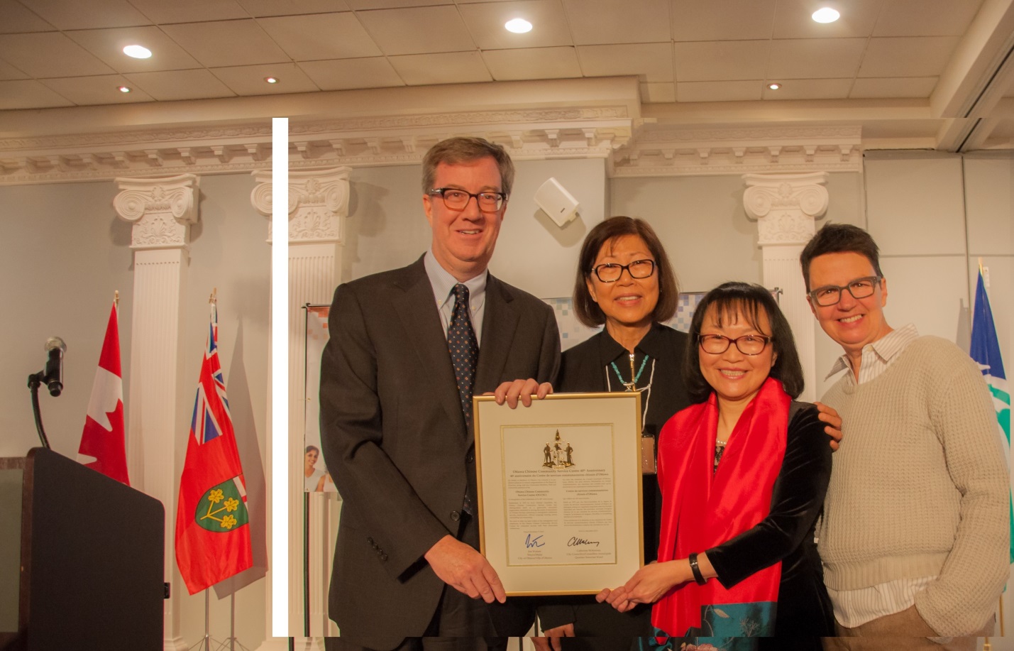 渥太華華人社區服務中心(OCCSC)成立四十周年籌款晚宴於12月2日晚隆重舉行。渥太華市長、市議員、多國使節、警察局代表、政商界人士和華人居民等五百位嘉賓、工作人員、義工們在渥太華Sala San Marco宴會廳歡聚一堂,共同慶祝OCCSC四十周年服務移民的業績,並通過該晚會的餐卷和拍賣等活動籌得五萬元善款服務社區。