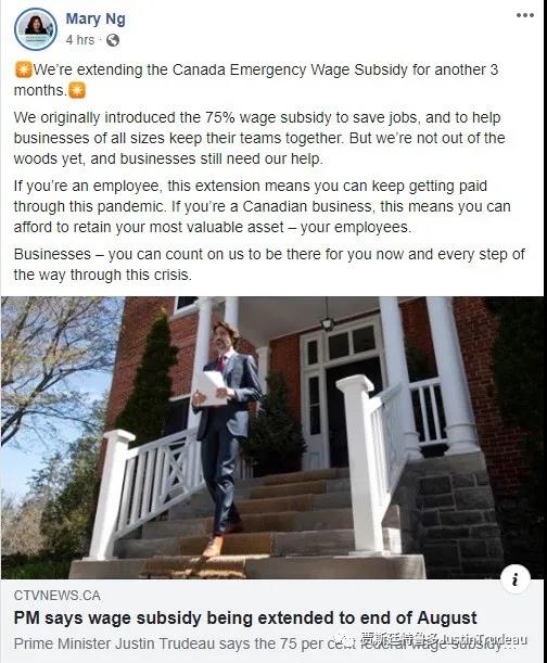 (Canada Emergency Wage Subsidy, CEWS)再延长三个月。