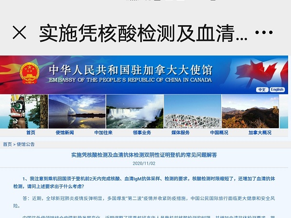 来源:中华人民共和国驻加拿大大使馆2020年11月2日公告